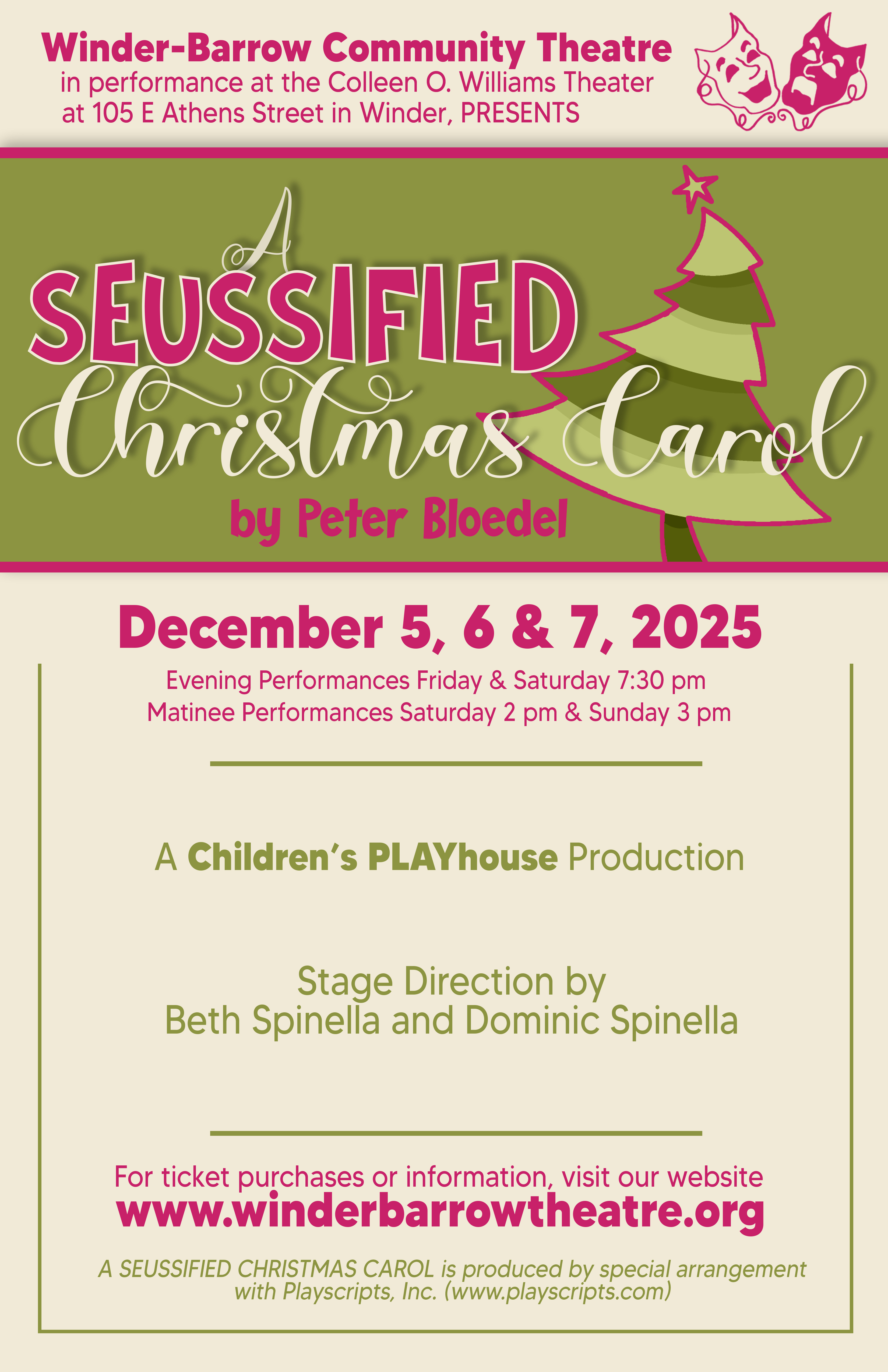 Winder-Barrow Community Theatre Children's PLAYhouse directors Beth Spinella (L) and Billie Nye-Muller (R) recently presented a $500 Sleigh Level Sponsorship to Barrow County Community Christmas Leader Ben McDaniel. Donations from all WBCT shows provide funds for local nonprofit groups as a part...